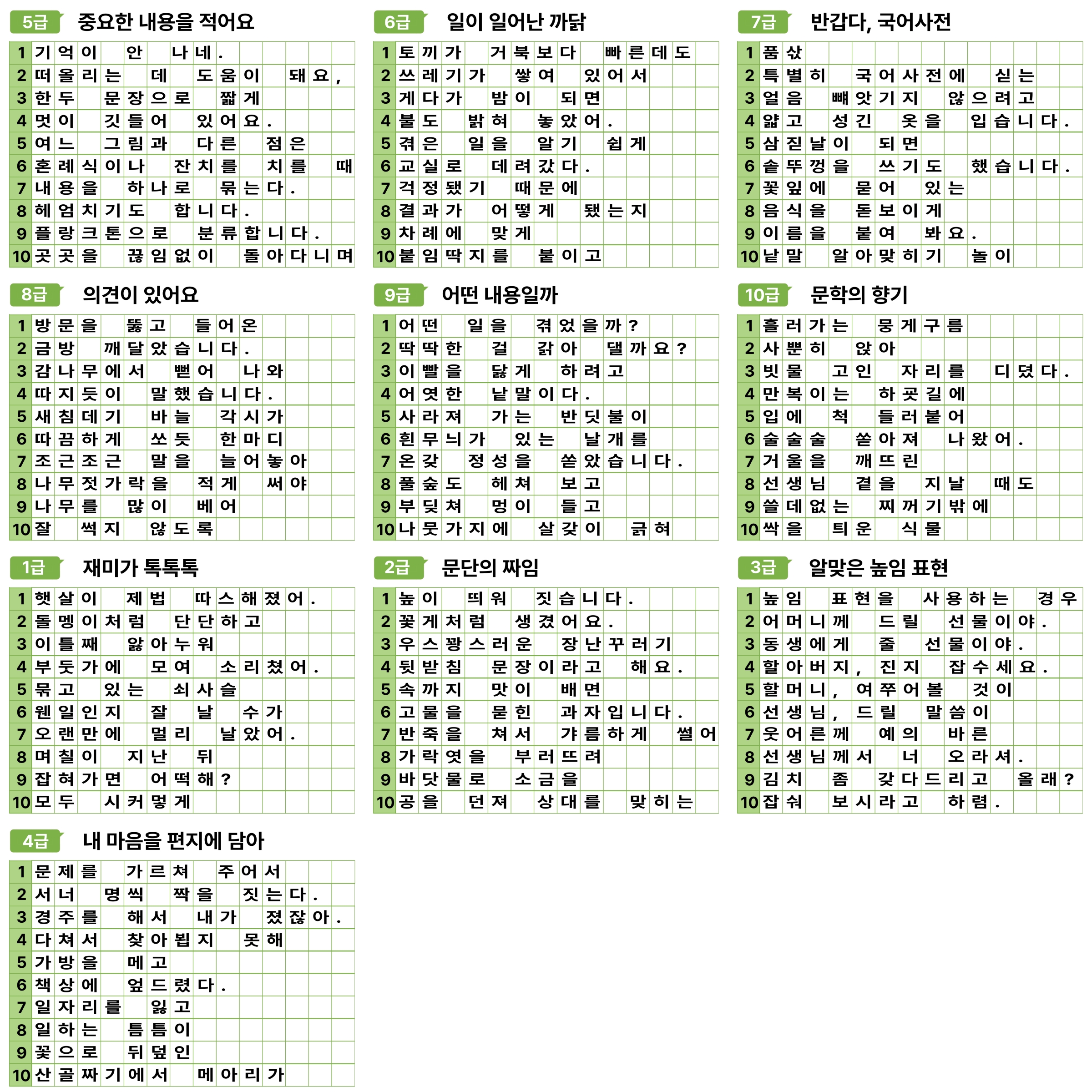 3학년 1학기 급수표