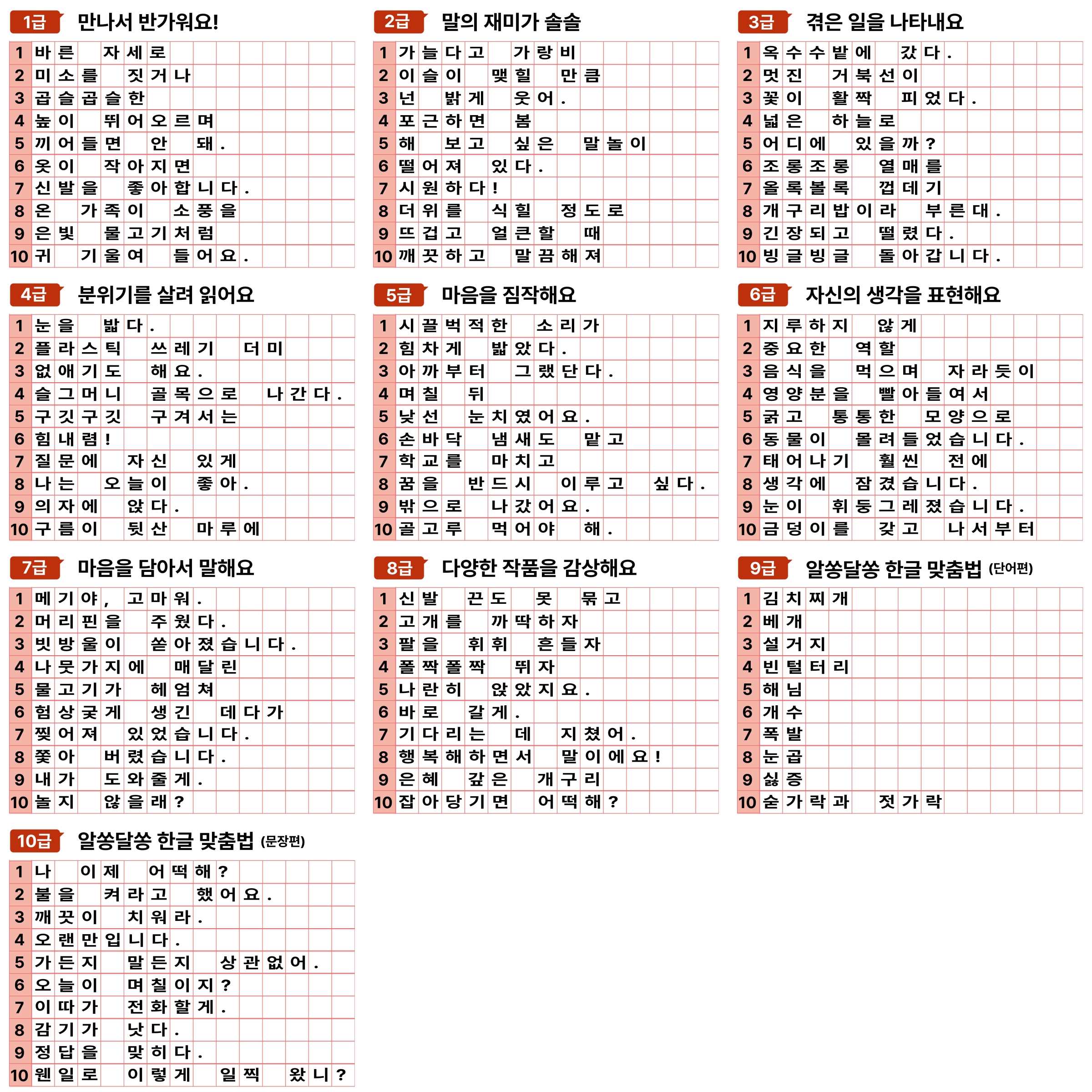 한글 틀려도 괜찮아 2학년 1학기 급수표